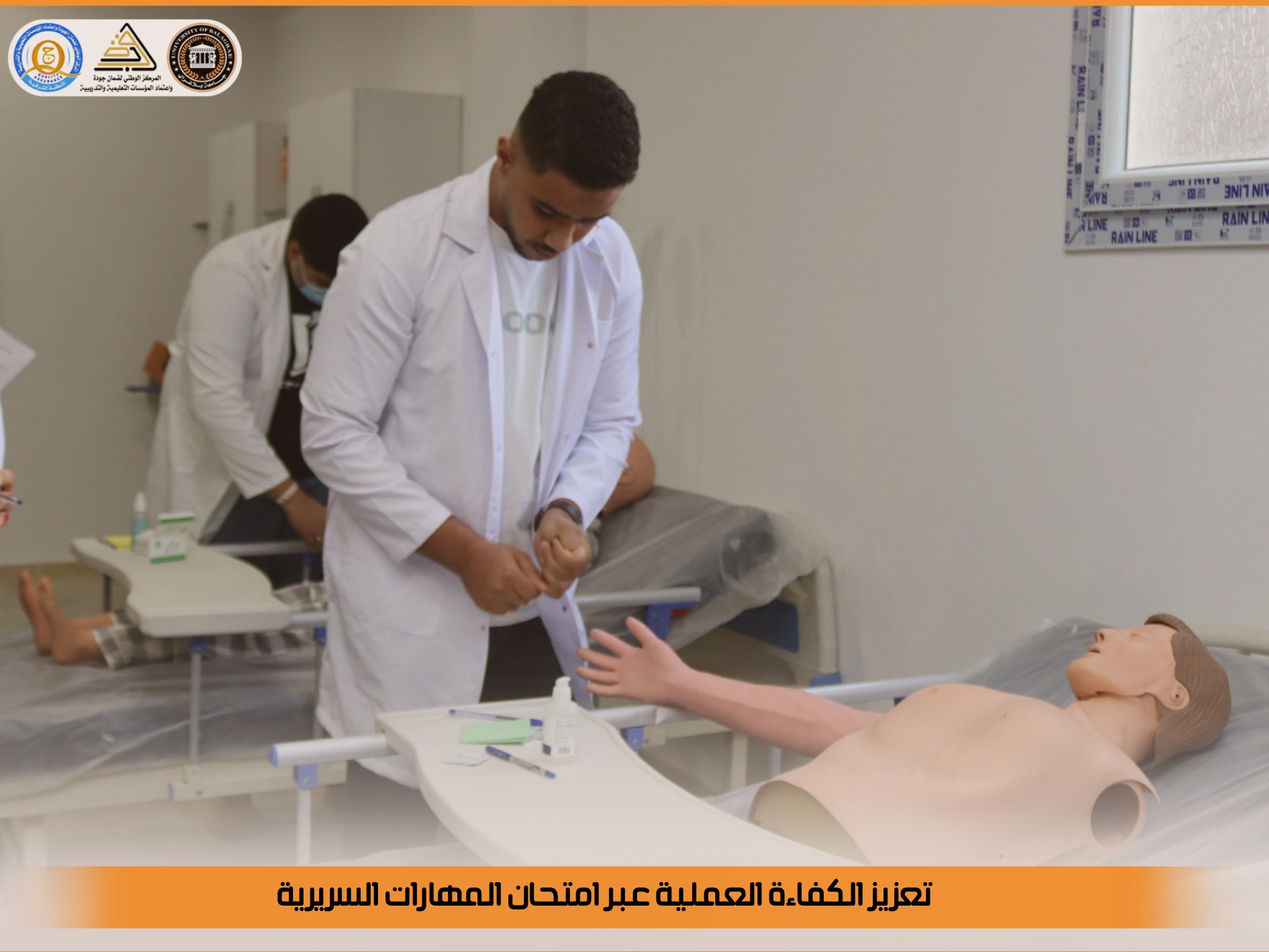 في إطار الحرص على رفع كفاءة الطلبة العملية، أُقيم امتحان معمل المهارات السريرية، والذي ركّز على تقييم الأداء التطبيقي في مهارتي قياس درجة حرارة الجسم وقياس النبض الكعبري، باعتبارهما من أساسيات التقييم السريري الأولي.