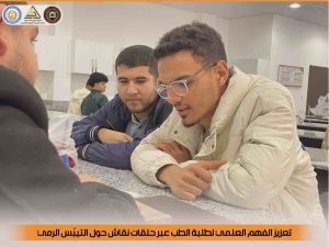 وتُعقد هذه الحلقات بشكل دوري وفق الخطة الدراسية المعتمدة، بهدف دعم استيعاب للطُلاب للمحاضرات، وتعزيز مهارات التفكير النقدي والتحليل العلمي لديهم، بما يسهم في إعداد كوادر طبية قادرة على الربط بين الجانب النظري والتطبيقي بكفاءة عالية.